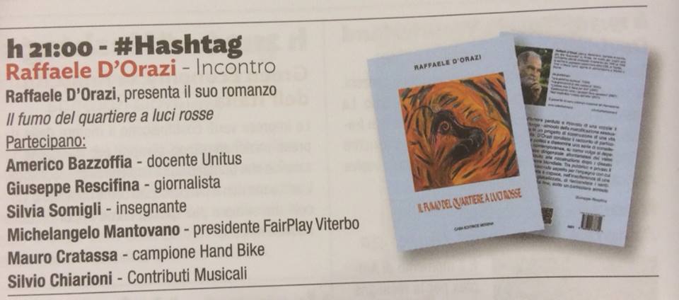 ll prof. Americo Bazzoffia ospite a JazzUp a Viterbo presenterà il 28 giugno 2015 a Piazza del Gesù, alle ore 21:00, il libro di Raffaele D’Orazi “Il fumo del quartiere a luci rosse”